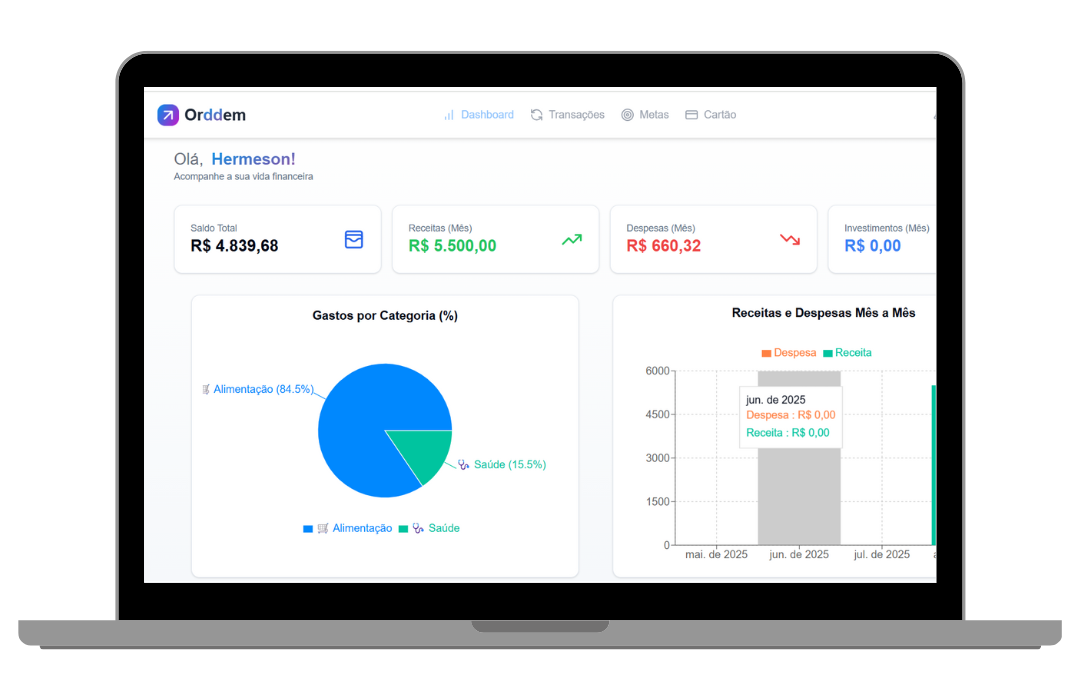 Organize seus gastos, defina metas e acompanhe sua evolução com clareza. Conquiste sua liberdade financeira de forma simples e prática.